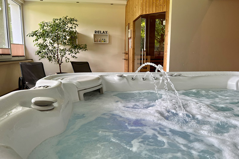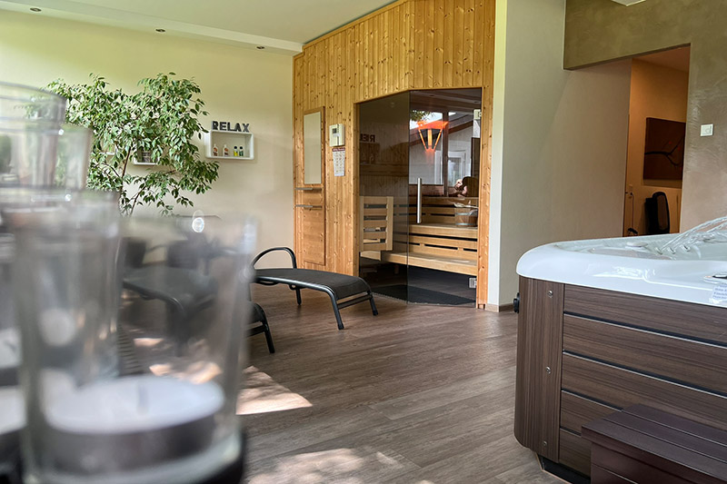 Relaxen Sie alleine und ungestört in unserer neuen Wellness-Oase mit Bio-Sauna, ( Dampf- oder finnische Sauna nach Wahl ), Jacuzzi-Whirlpool, Ruheraum, Massagebank, Shiatsu-Massage-Stuhl, Kaffee-Ecke, und Wintergarten.